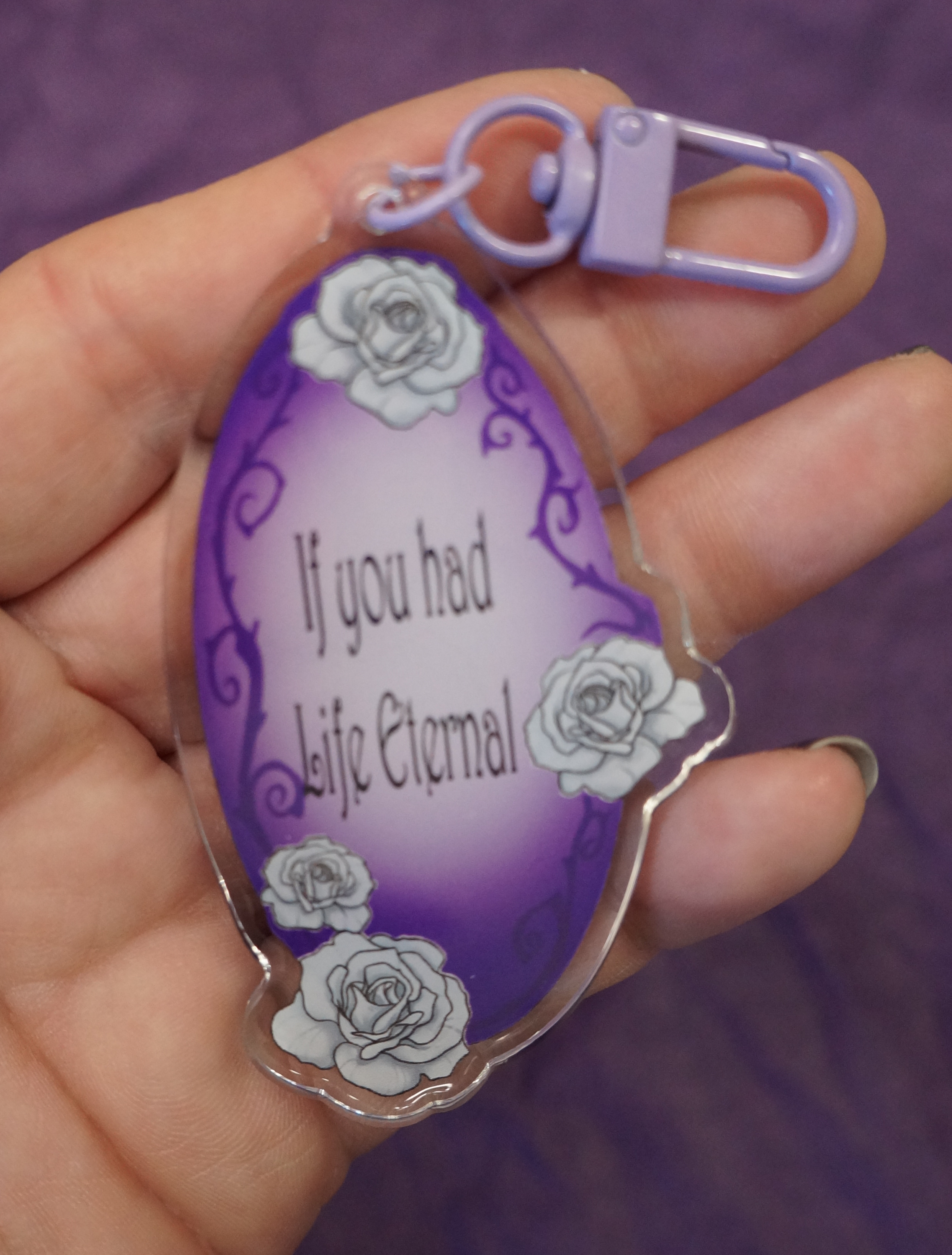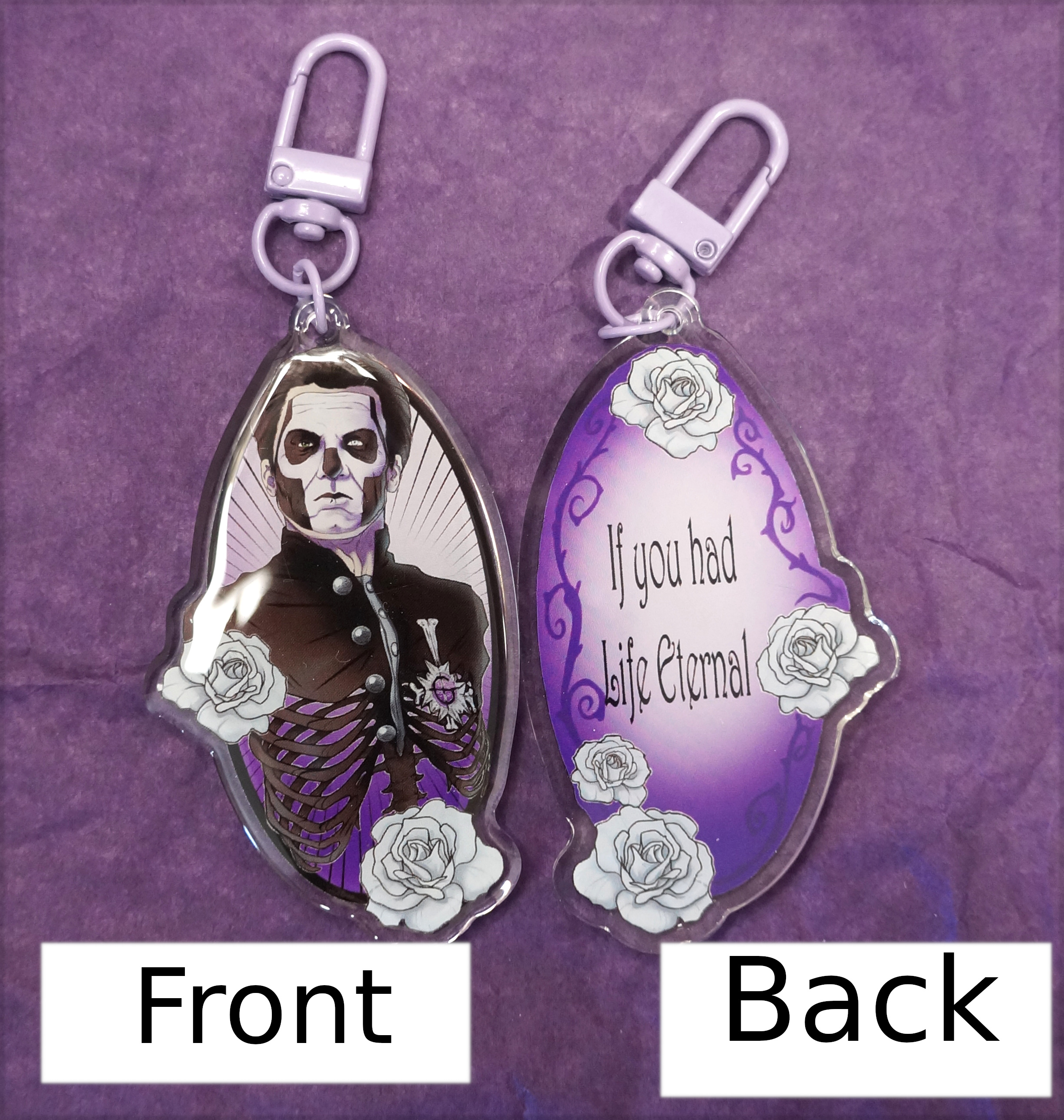 The key-chain has a different design on each side. One side with Terzo portrait and other with song quote "If You Had Life Eternal"
