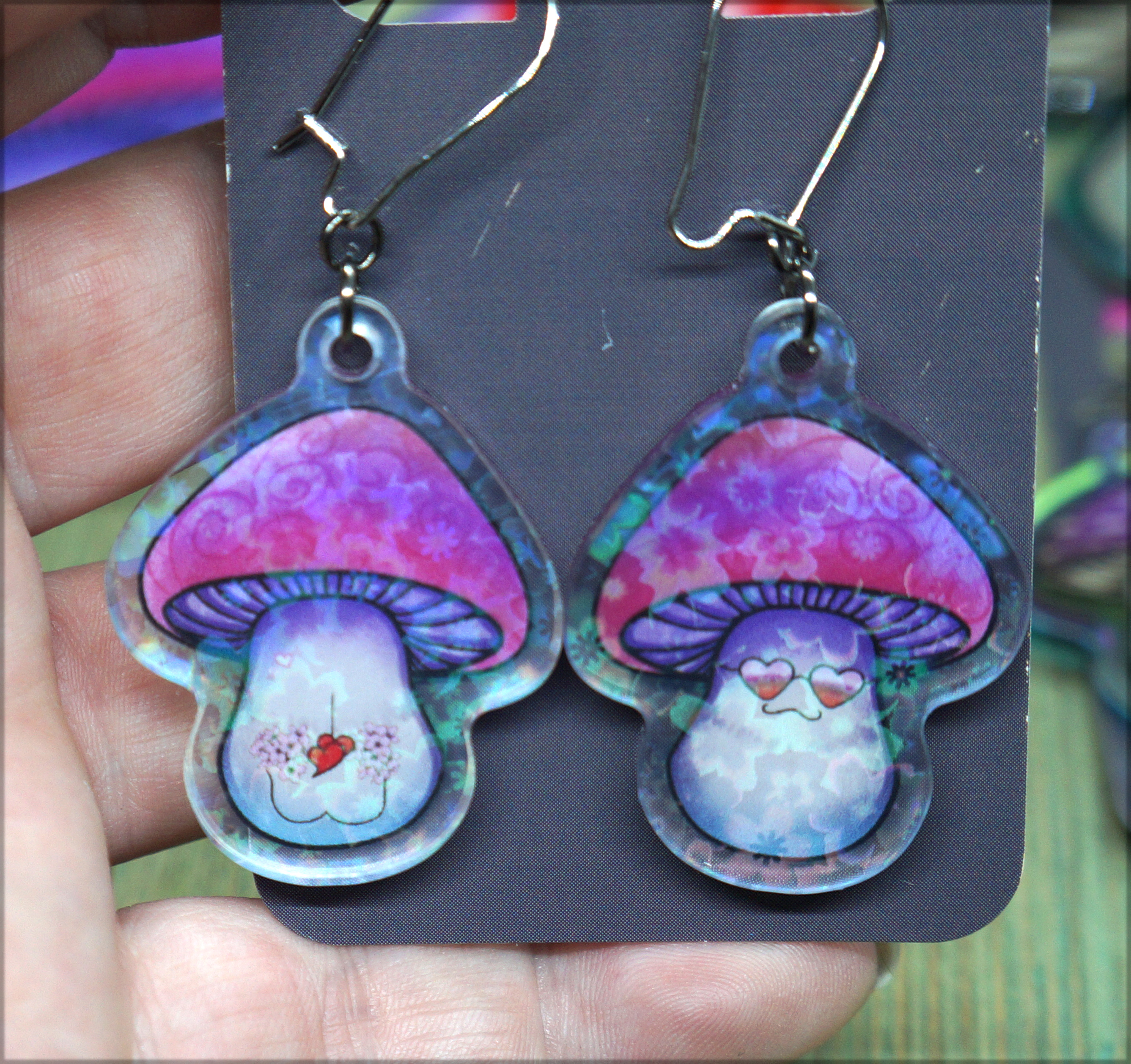 These 1.5 inch acrylic charms are of my cute mushroom pals front and back sides.