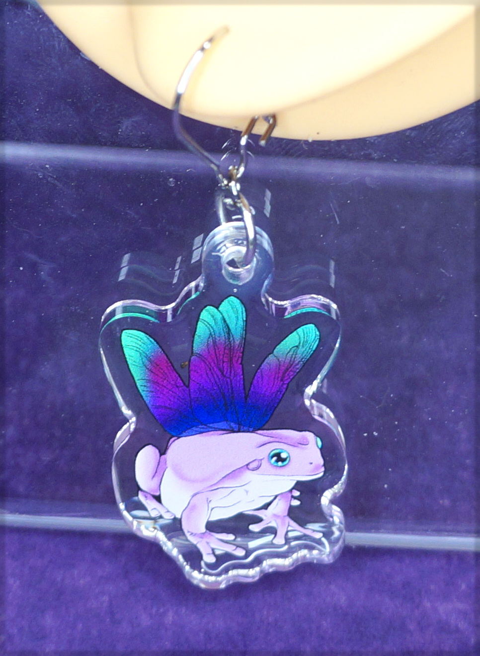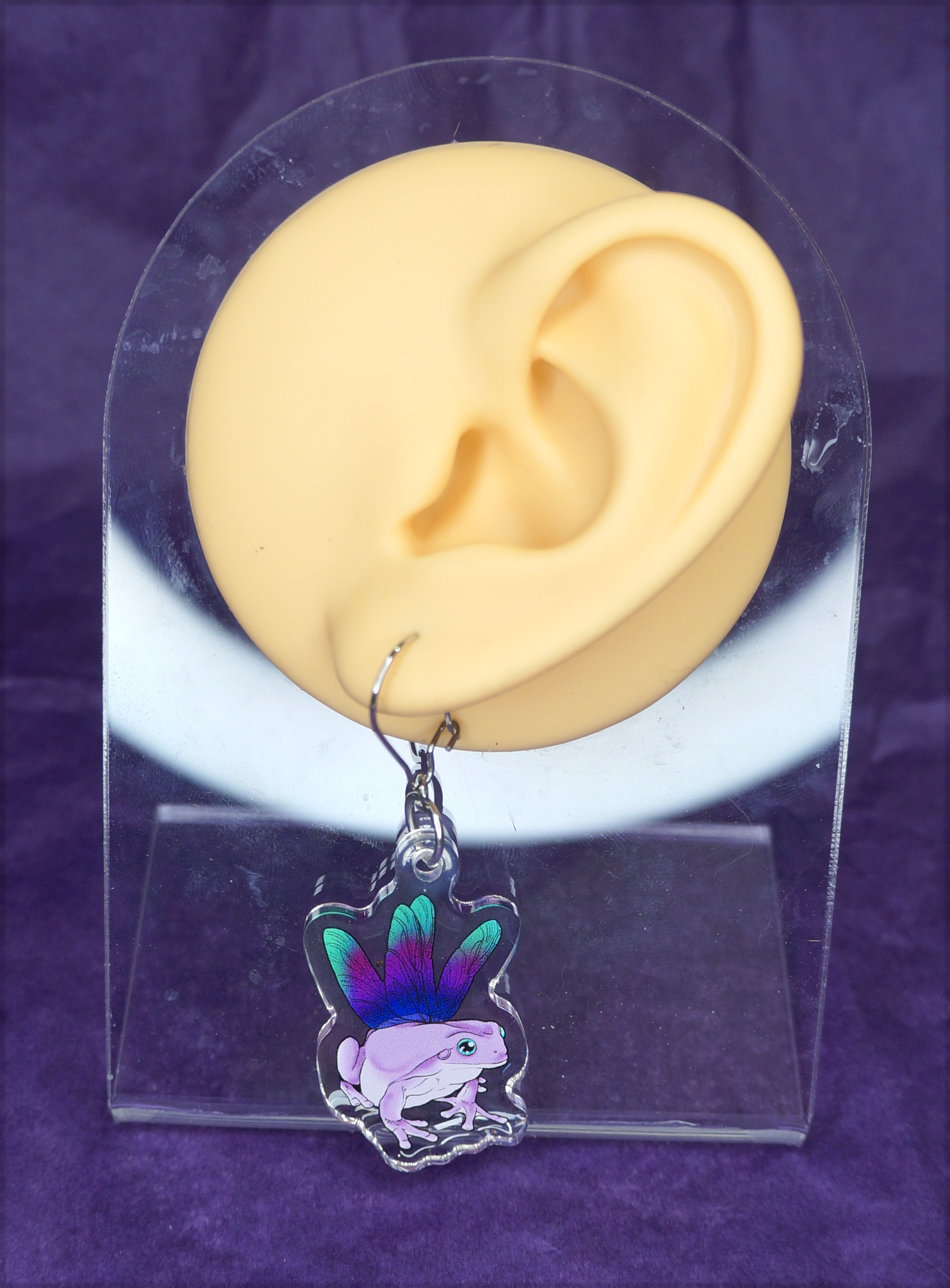 Earrings are made from hard acrylic with image sandwiched between layers. Charms are about 1.5 to 2 inches on a stainless steel, tunnel/stretched lobe friendly hook that closes off.