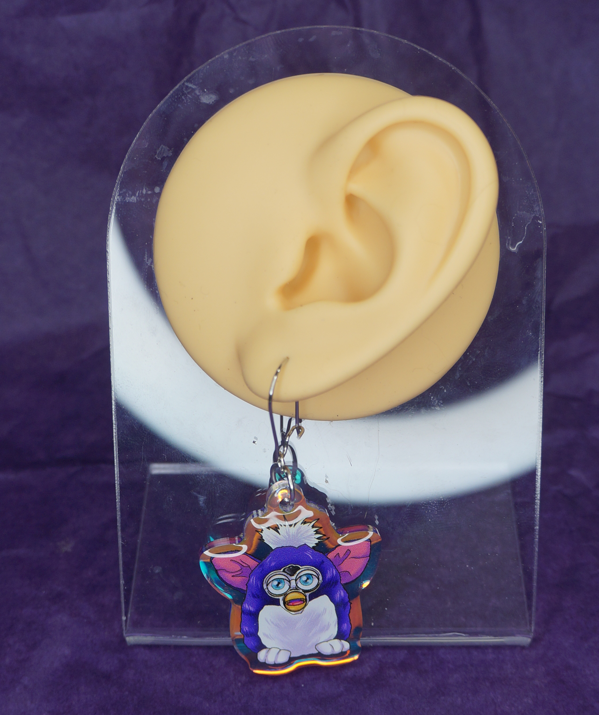 Earrings are made from hard acrylic with image sandwiched between layers. Charms are about 1.5 to 2 inches on a stainless steel, tunnel/stretched lobe friendly hook that closes off.