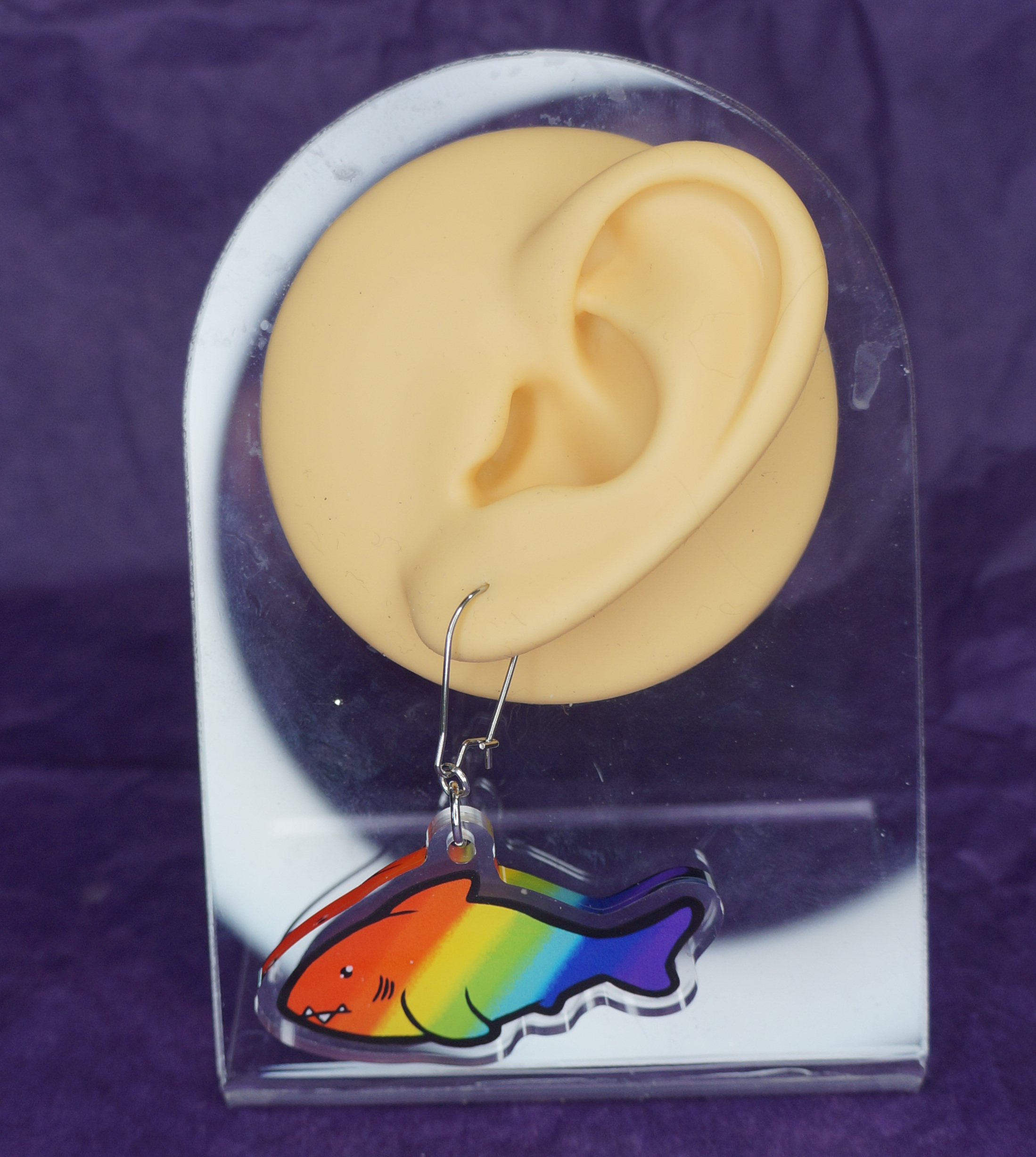 Earrings are made from hard acrylic with image sandwiched between layers. Charms are about 1.5 to 2 inches on a stainless steel, tunnel/stretched lobe friendly hook that closes off.
