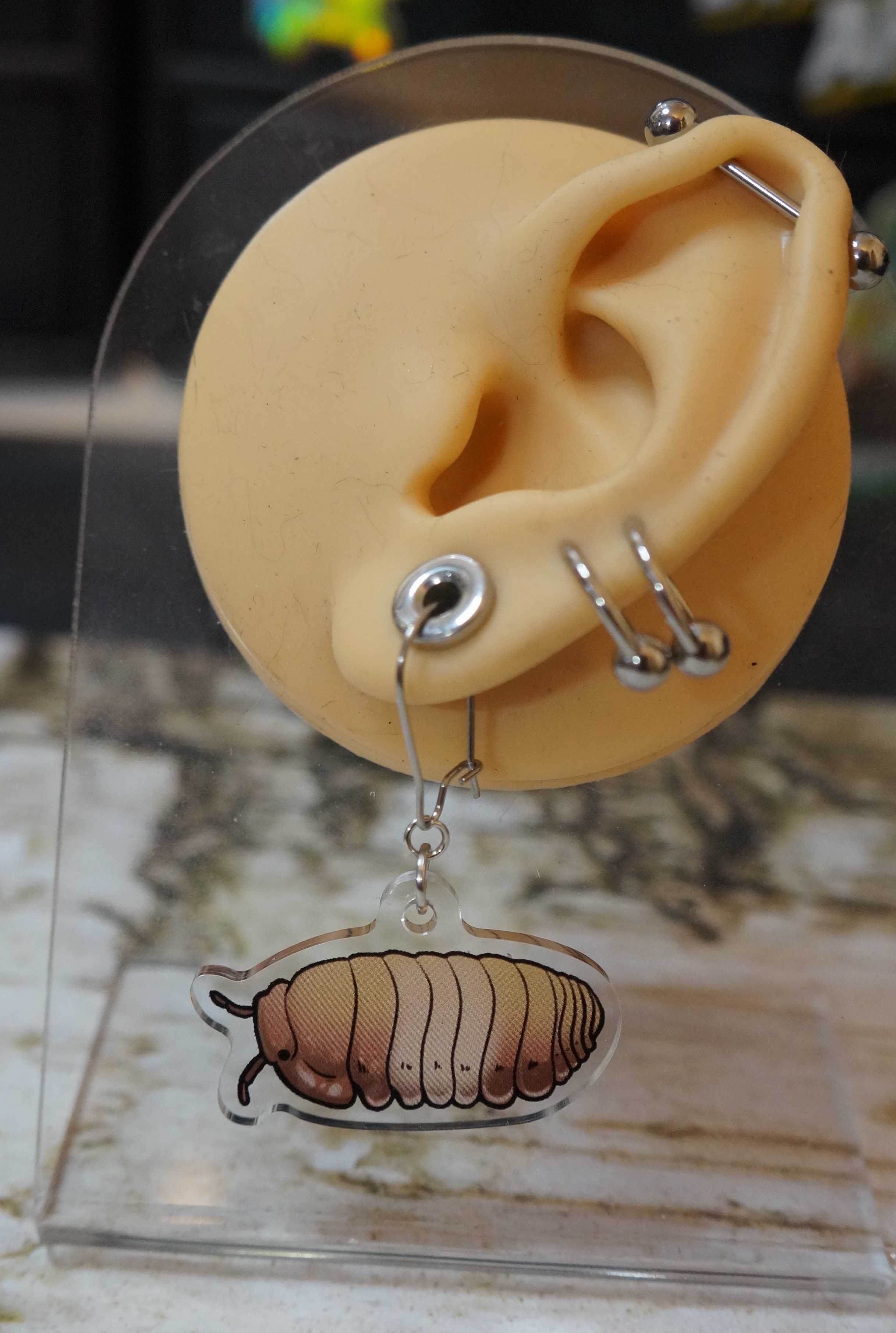 Adorable 1.5 inch acrylic charms of my new Rubber Duck Isopod design. Double sided print, with stainless steel earring hook that closes. Perfect for people with stretched ear lobes. Tunnel friendly.