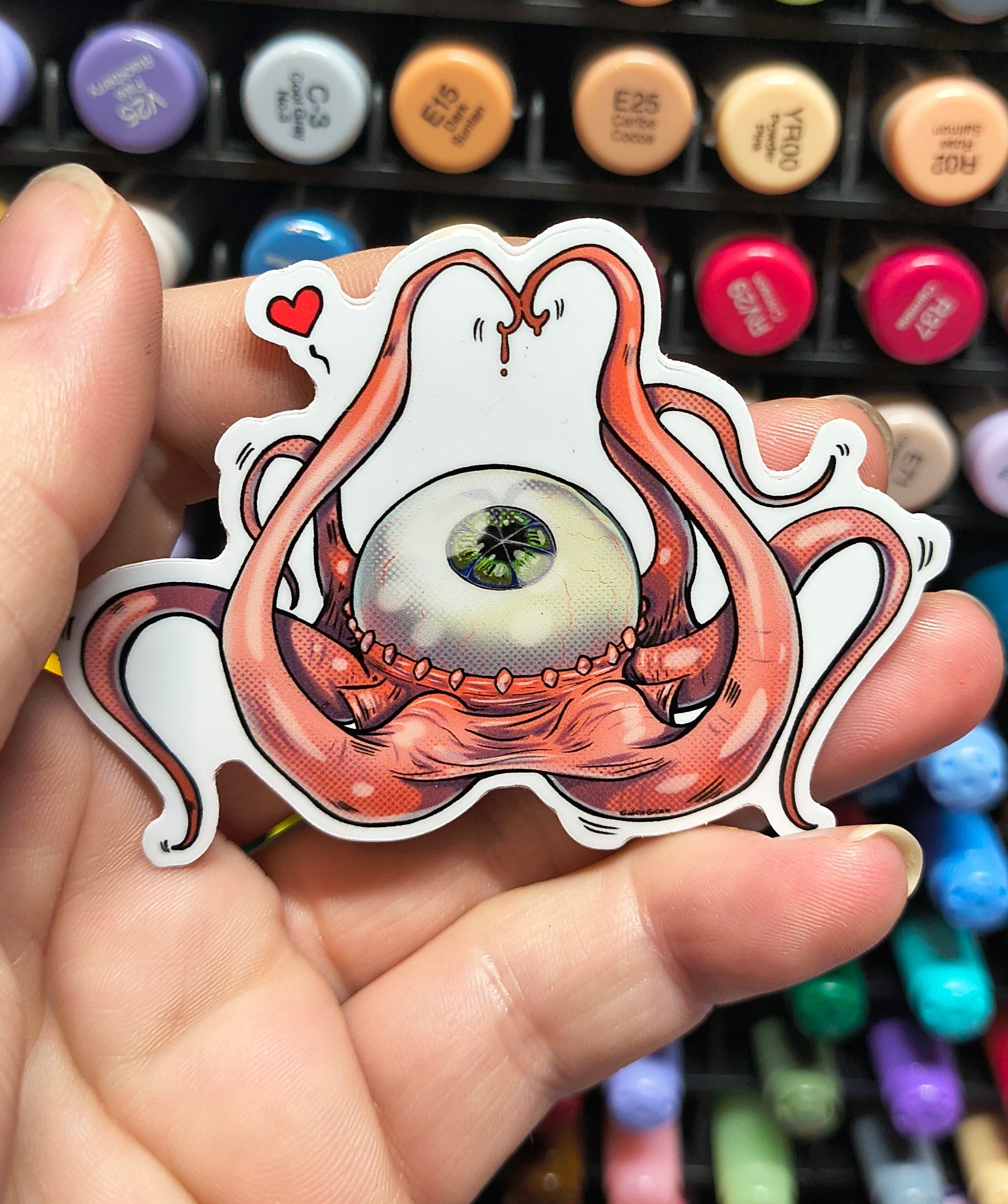sticker is 3"x2.5" glossy finish vinyl. art of the eyeball alien from Alien Earth.