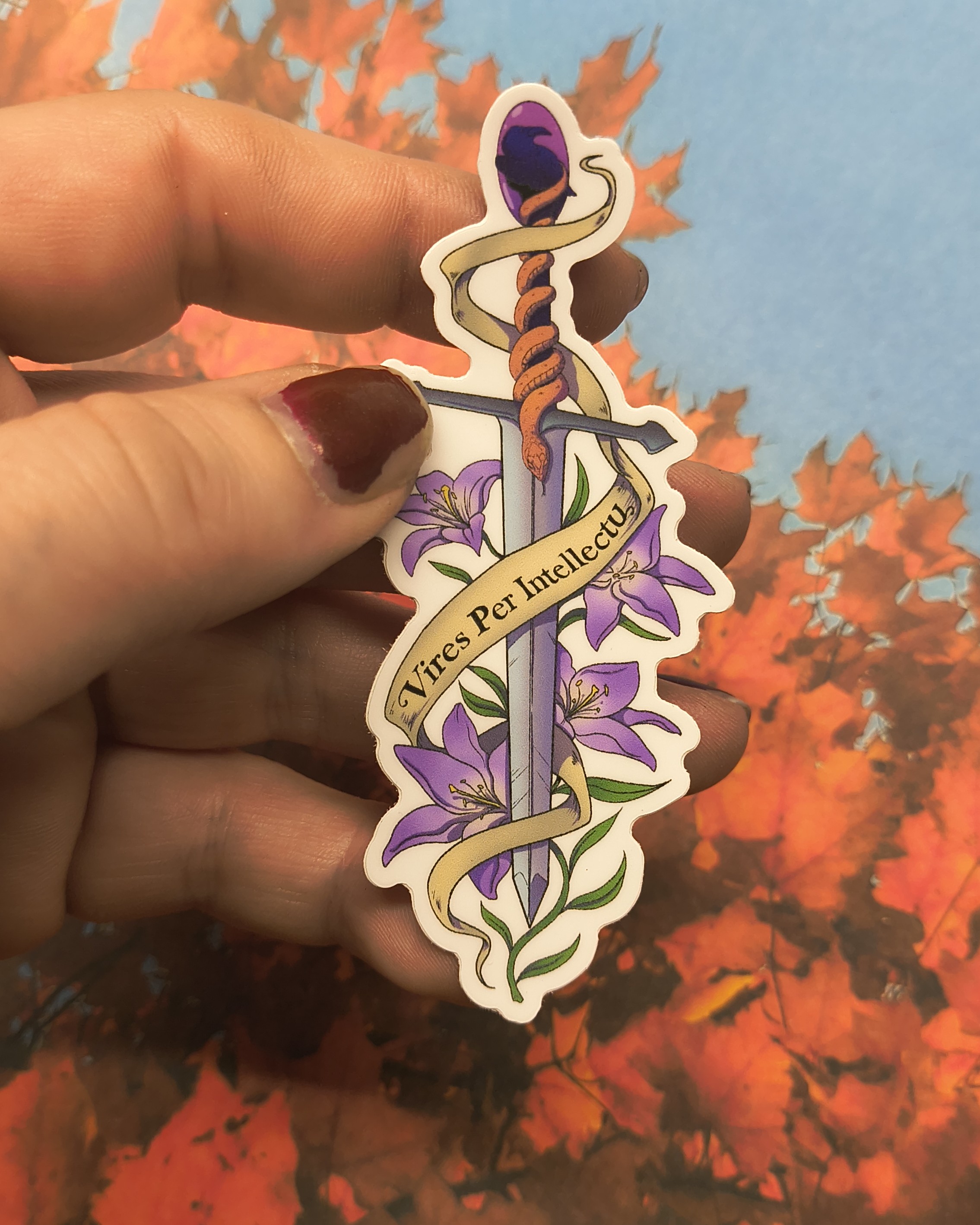 Stickers are 3" long, of Lily's dagger. Single sticker this time around.