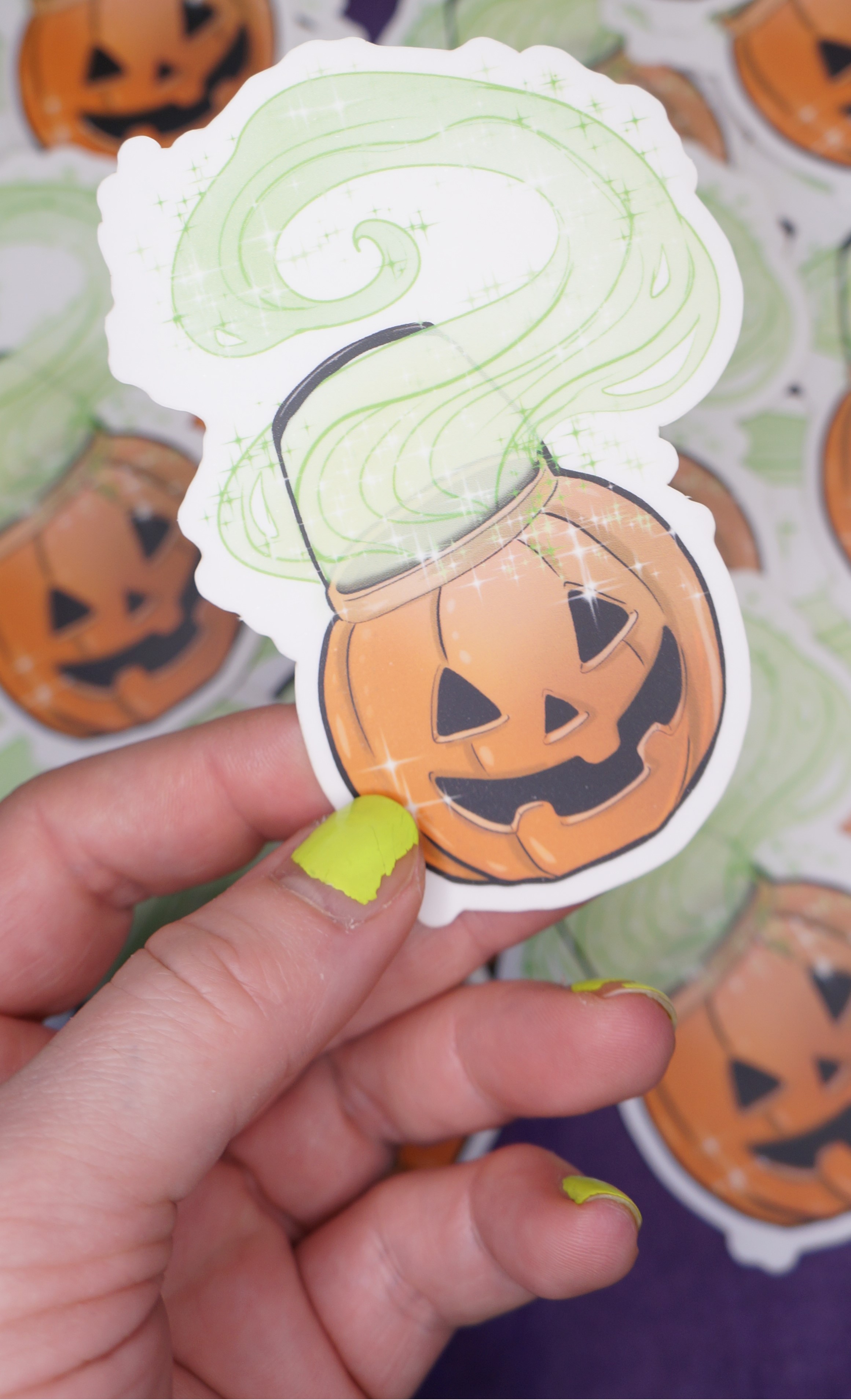 Stickers are larger than normal, on transparent background, matte finish of the trick or treat bucket art.