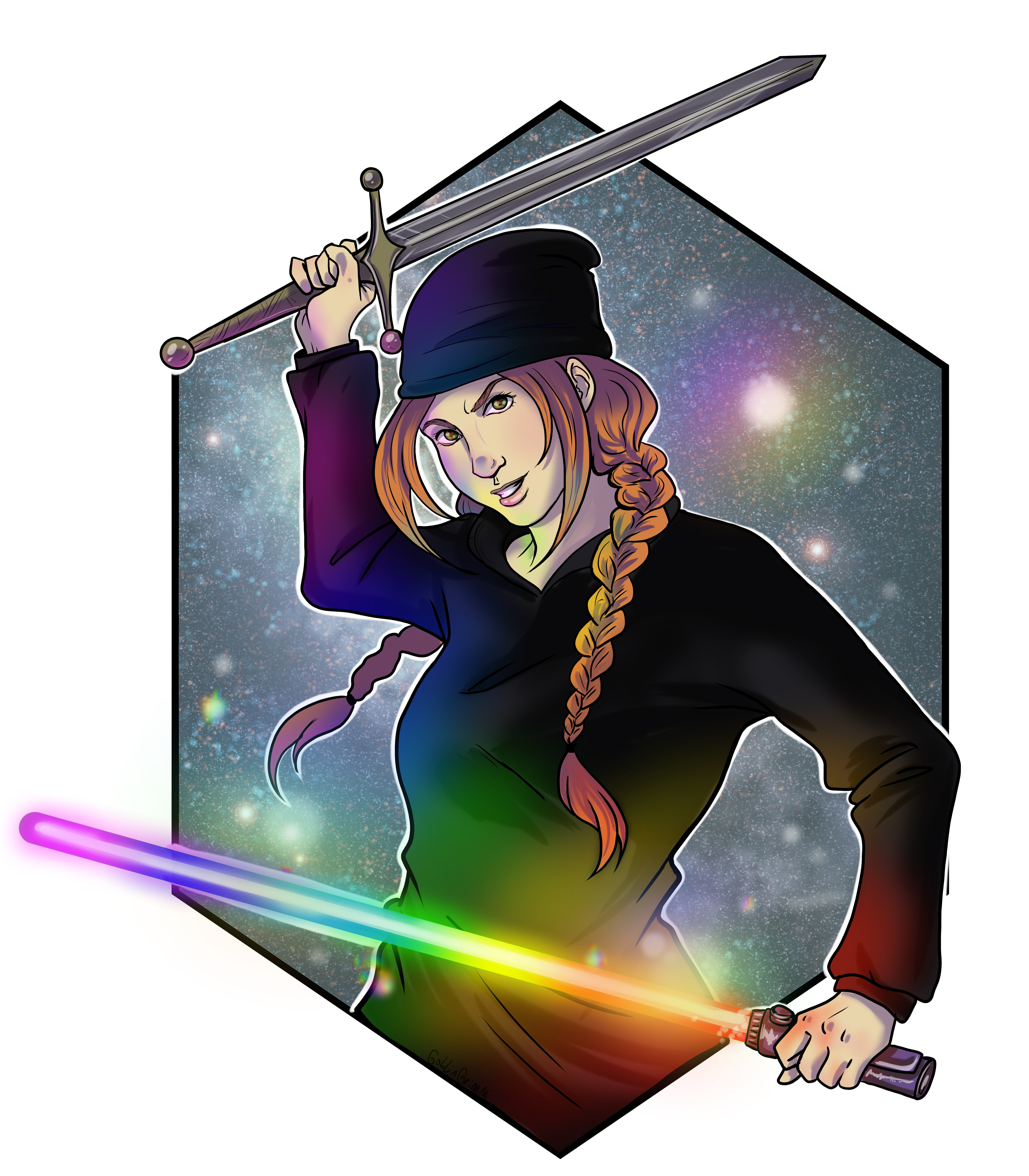 stickers are 3 inch, glossy, art of Lily with lightsaber and sword combo.