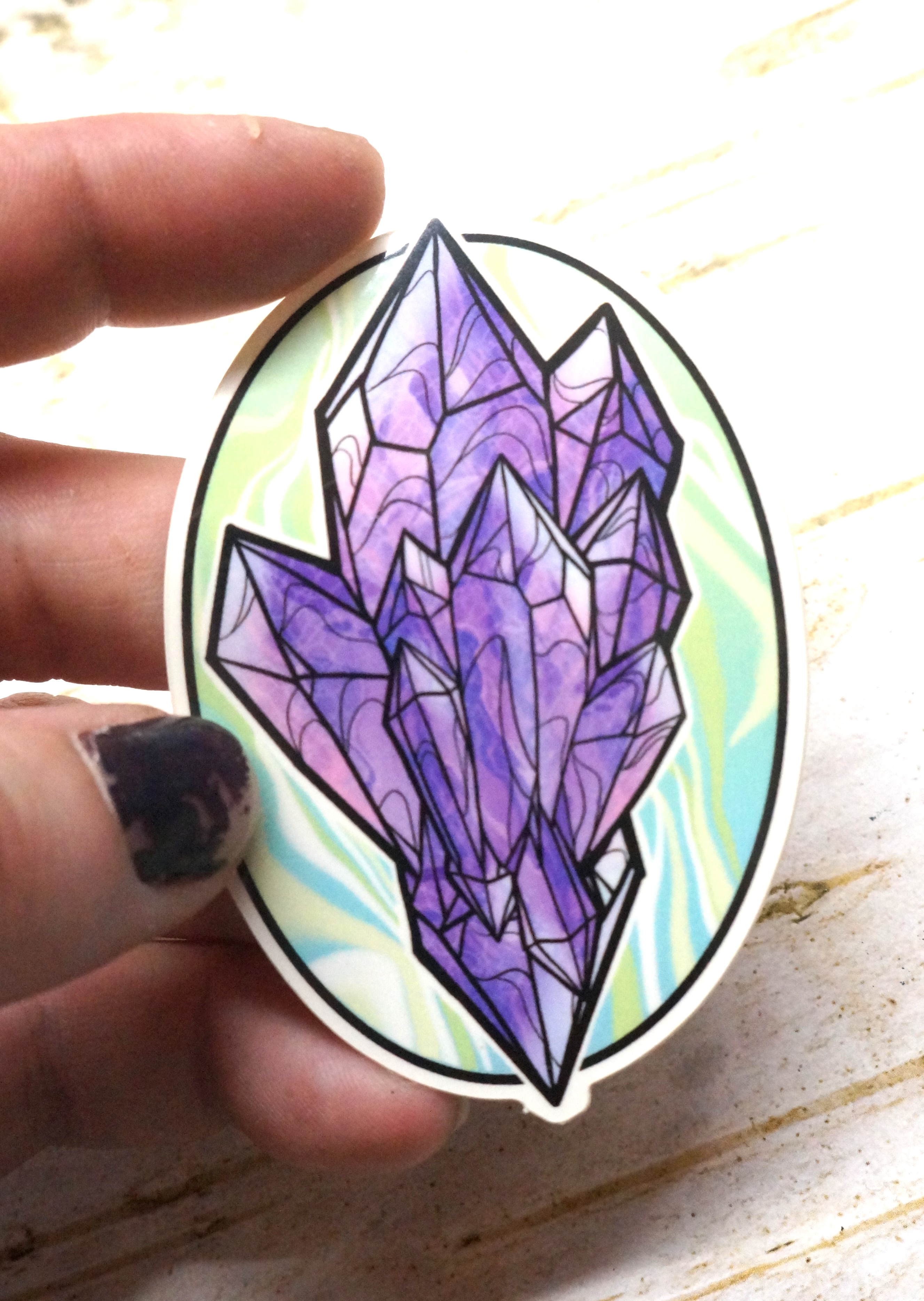 glossy finish, 3 inch sticker of a crystal cluster.