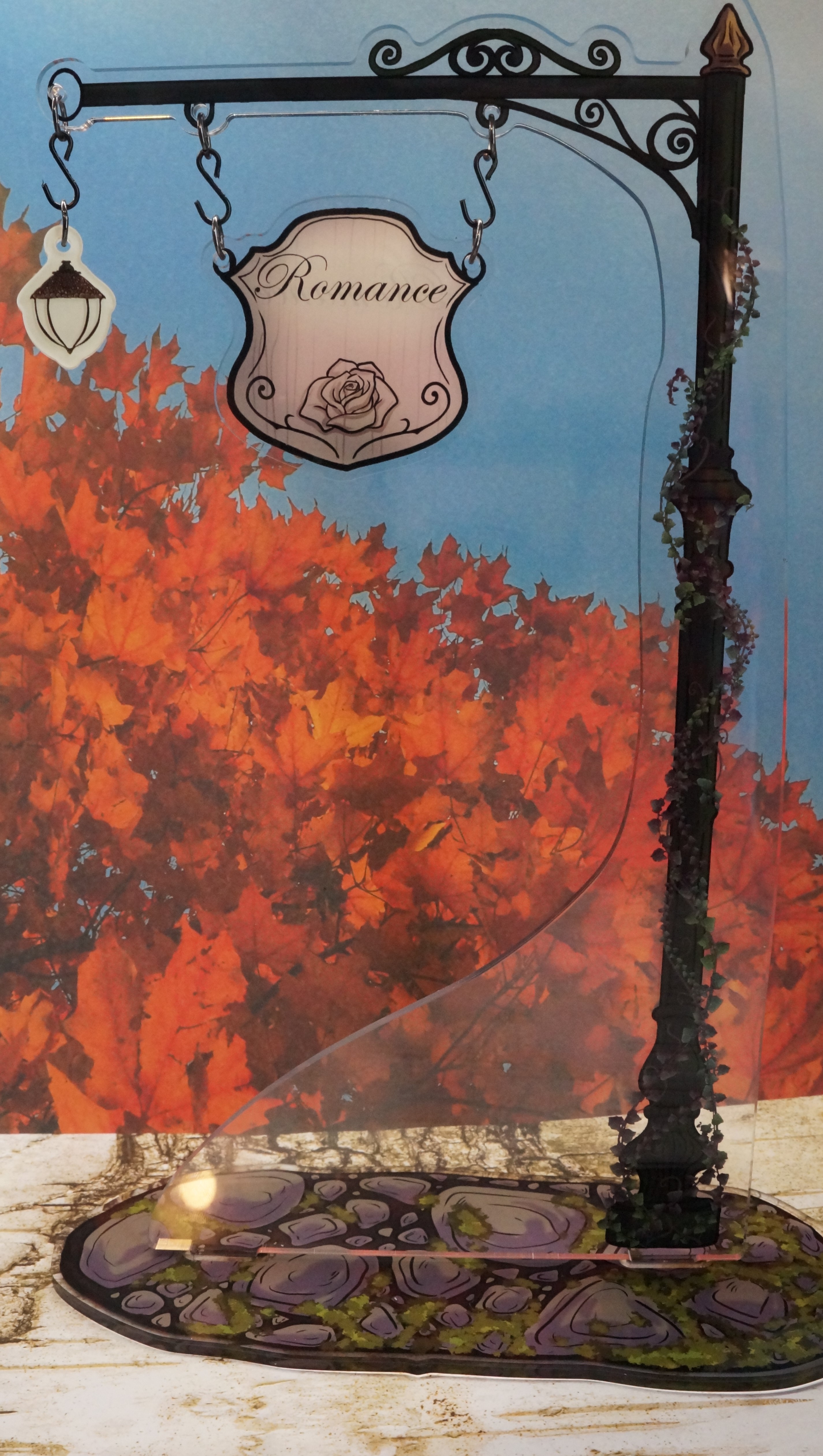 Acrylic lamp post standee with cobble stone-acrylic base (10 inches tall, sticks out 5 inches)