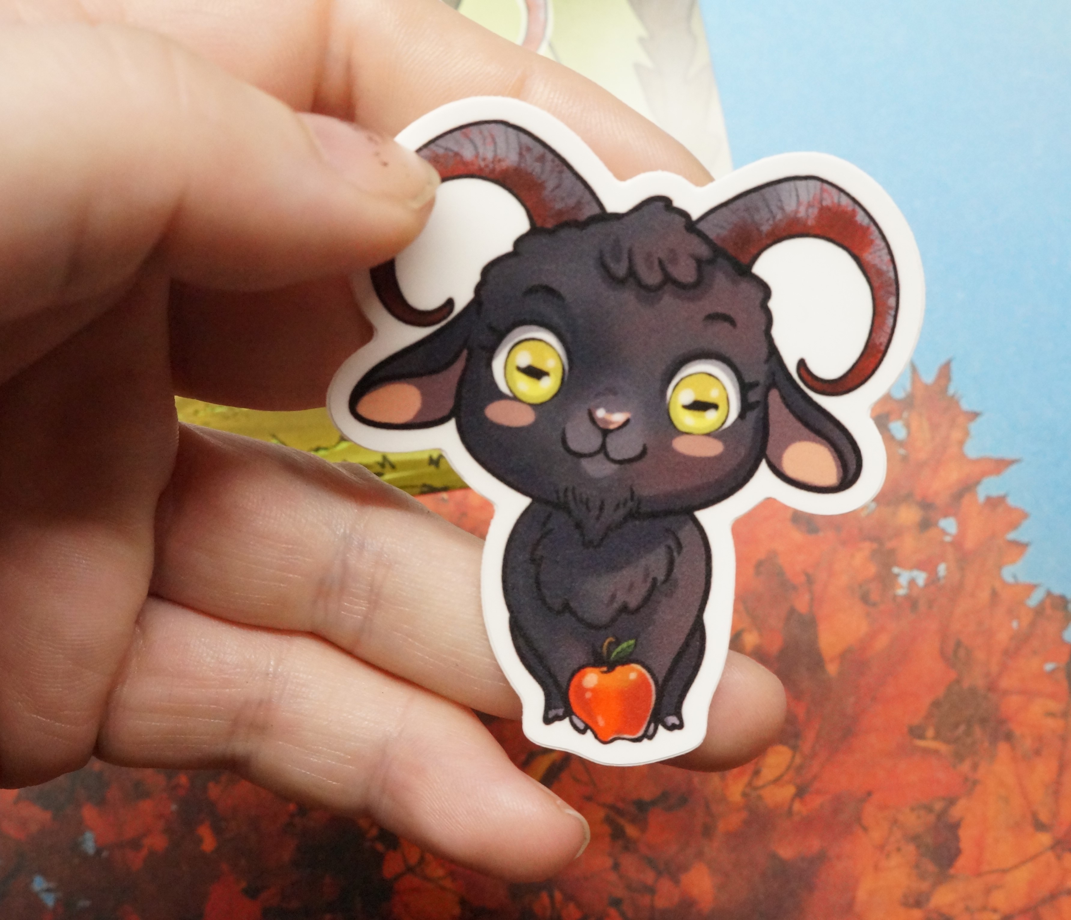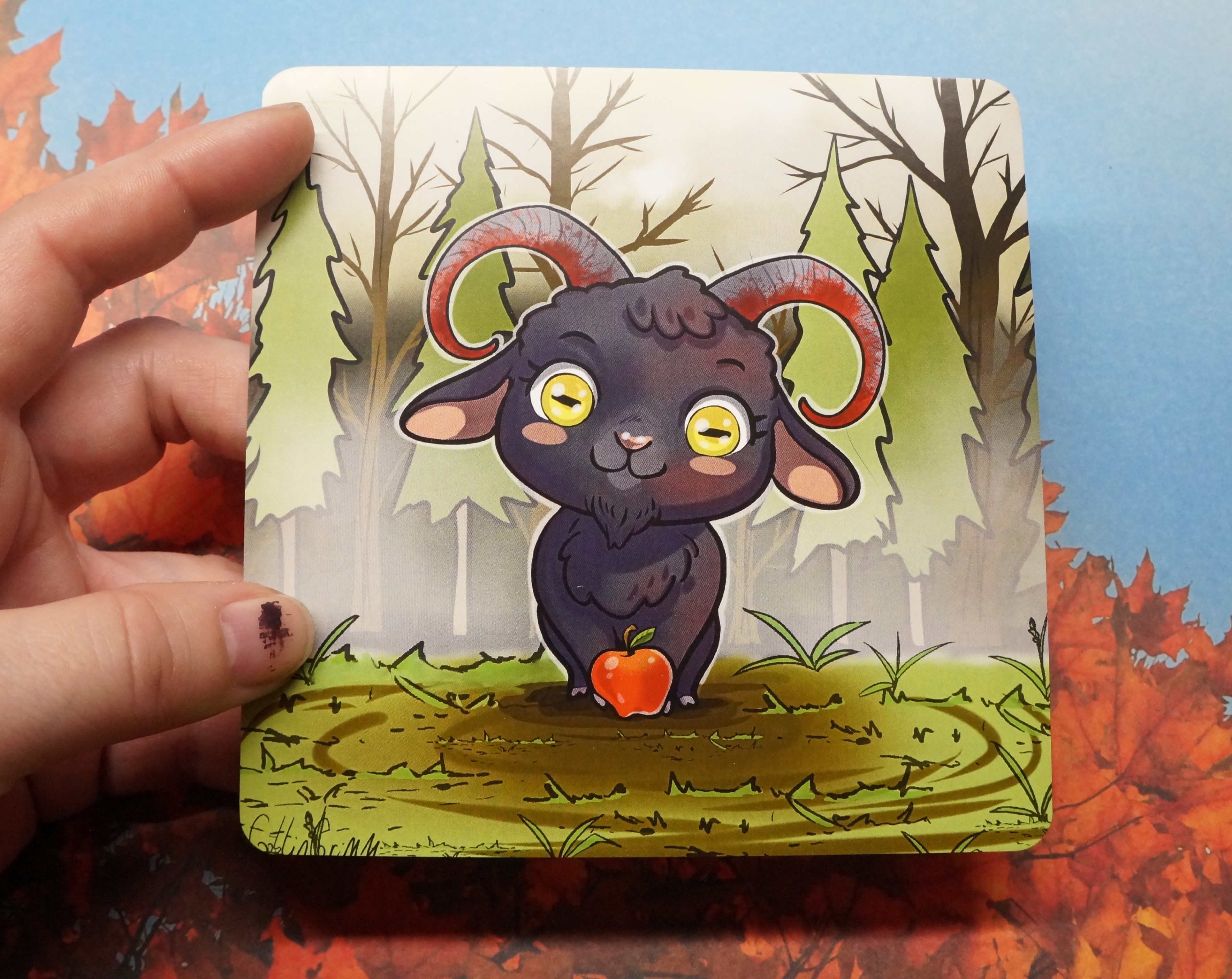 Print is 5x5 with rounded edges on heavy card stock. Sticker is 3 inches.